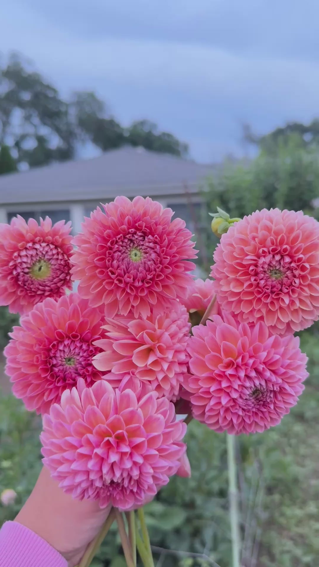 Coral peach ball dahlia. This dahlia changes color depending on the temperature. Each tuber is $5 and comes guaranteed with at least one eye for confident growing.